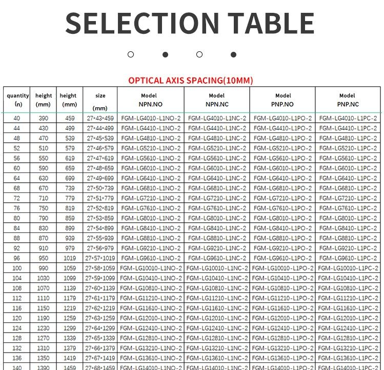 0.1–0.5m / 0.1–2m / 0.1–4m |