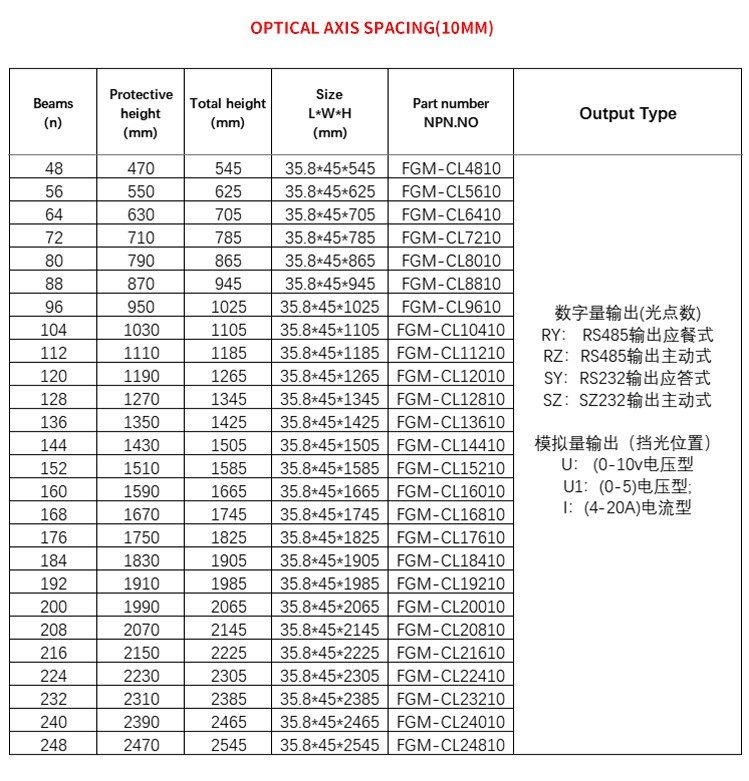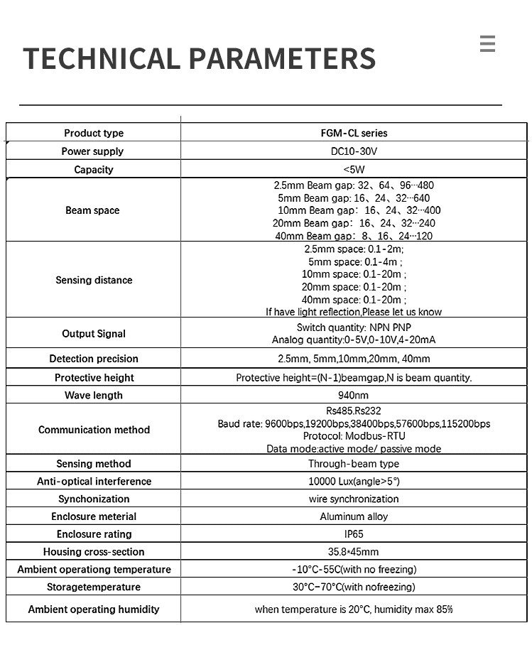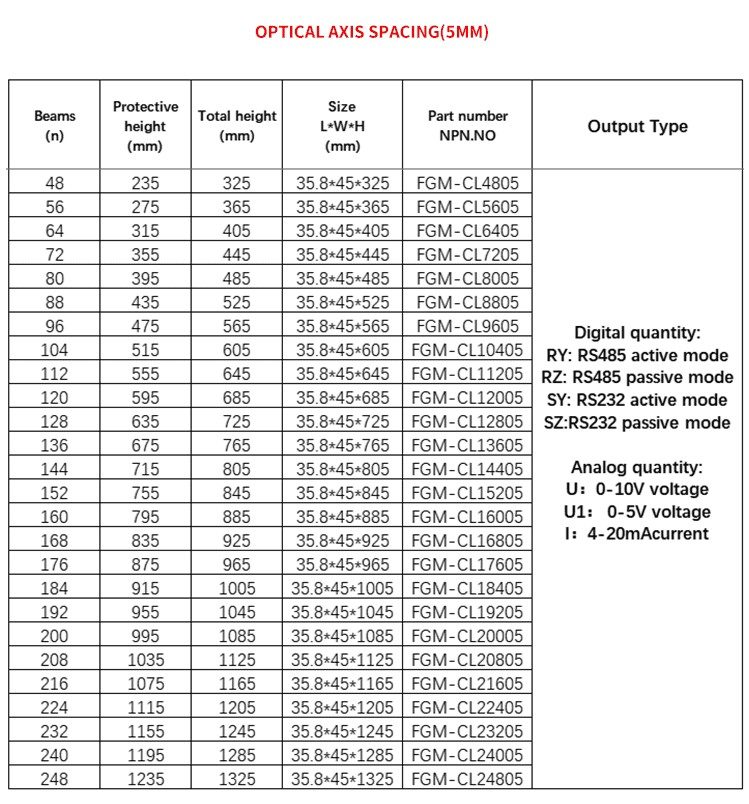 | Output Signal | Switch quantity: NPN/PNP, Analog quantity: 0-5V, 0-10V, 4-20mA |