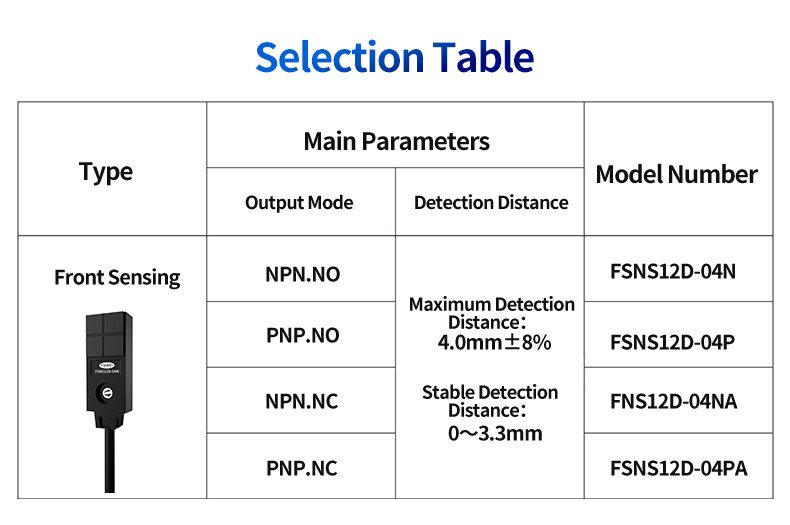 | Output | NPN.ON/NPN.NC/PNP.NO/PNP.NC |