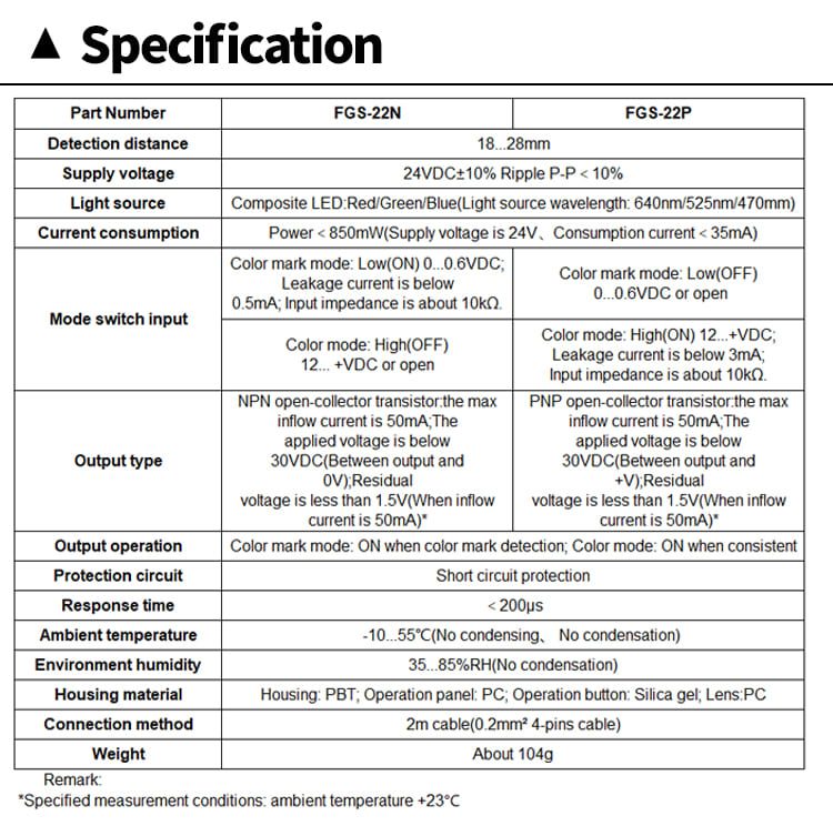 | Description | Precise Color Recognition, Color Mark Sensor |