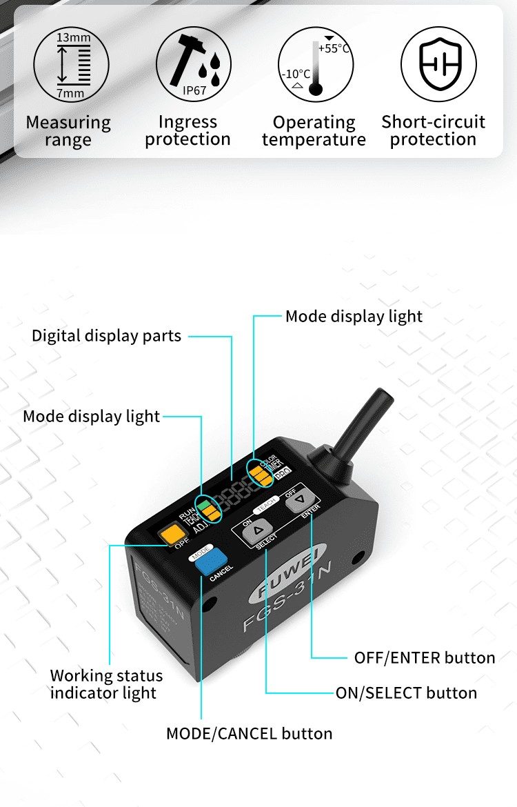 | Spot size | 1*5mm (setting distance: 10mm) |
