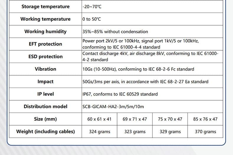 | Storage Temperature | -20~70℃ |