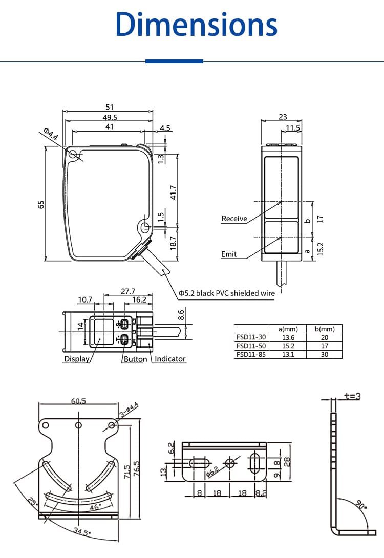 | Detection Range | 25-35mm, 35-65mm, 60-110mm |