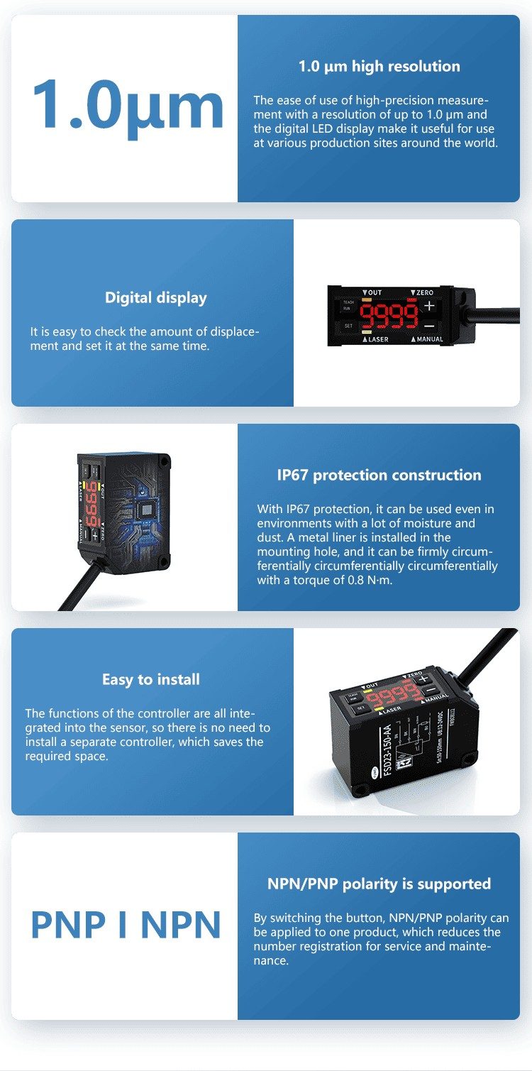 | Features | High precision laser displacement sensor |