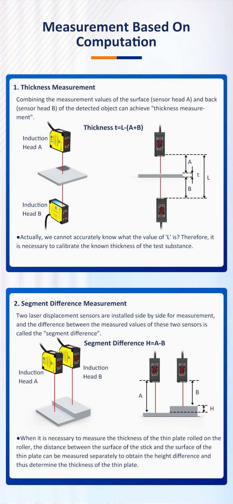 | Theory | Laser triangulation principle measurement method |