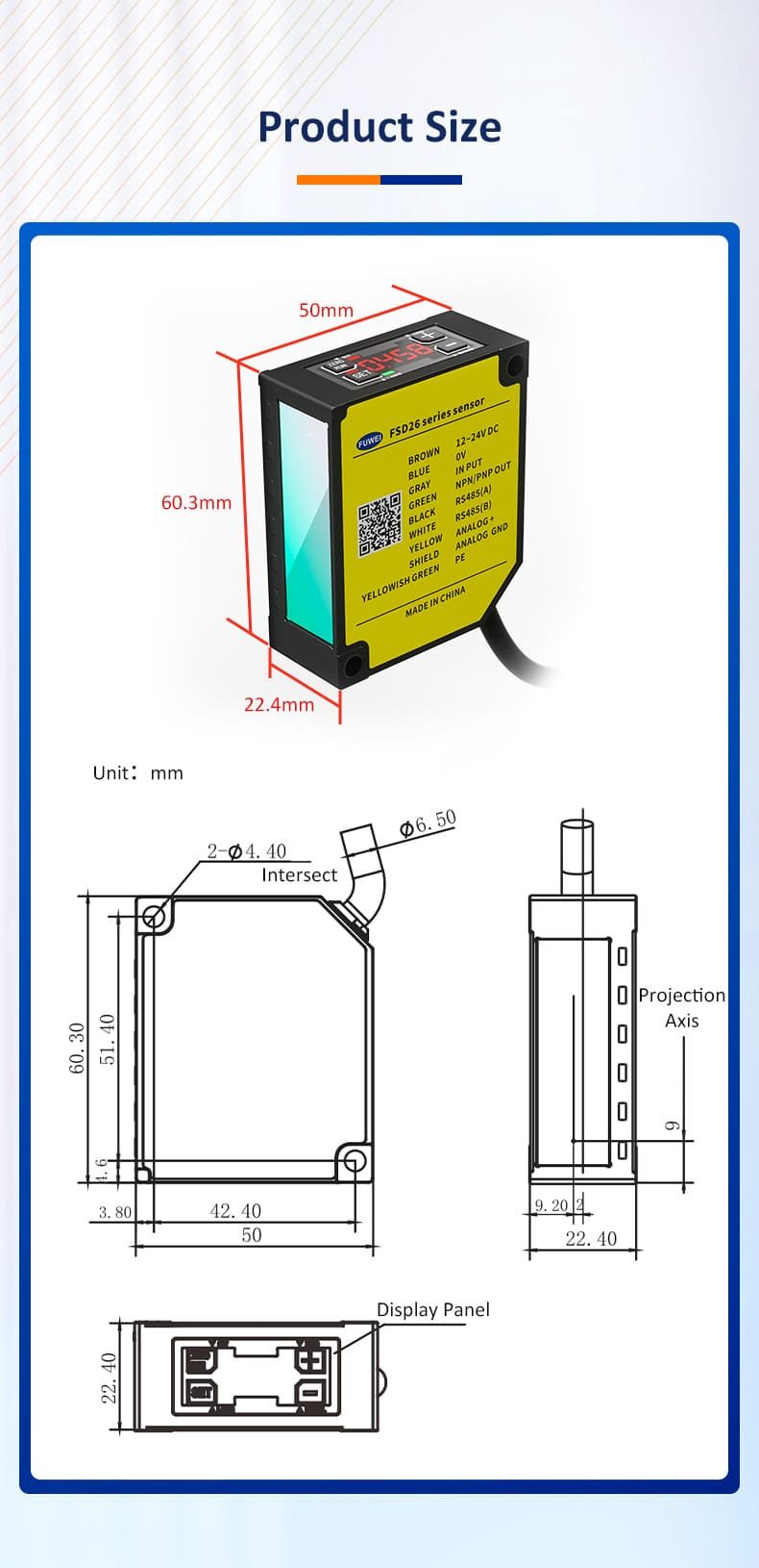 | Supply Voltage | RS485: 10-30VDC, 4-20mA: 12-24VDC |