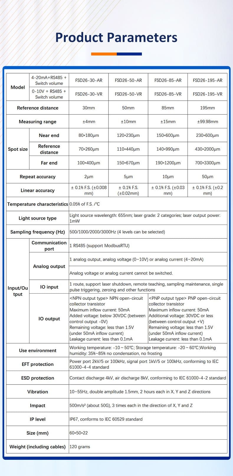 | Description | High precision laser displacement sensor |