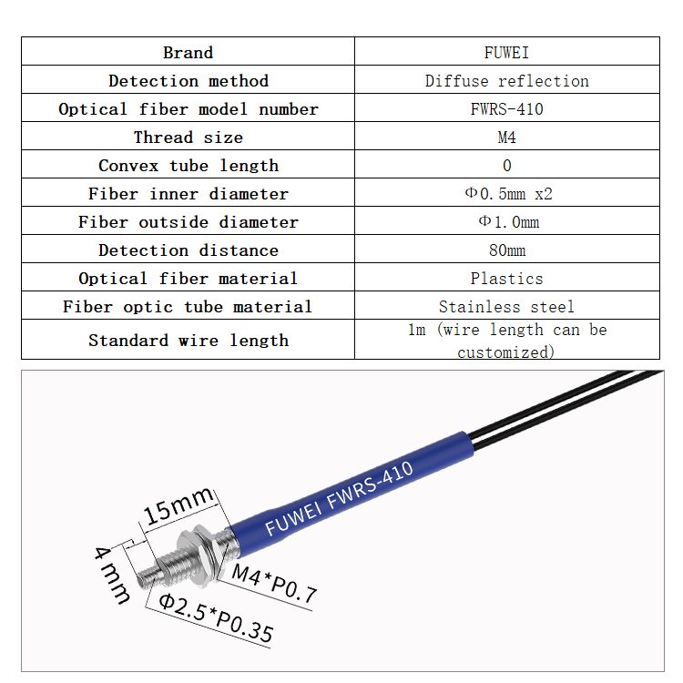 | Sensor Description | Diffuse Reflection Fiber Optical Sensor |