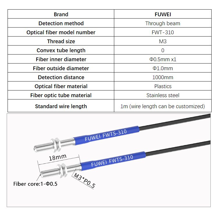 | Description | M3 Through Beam Fiber Optic Sensor |
