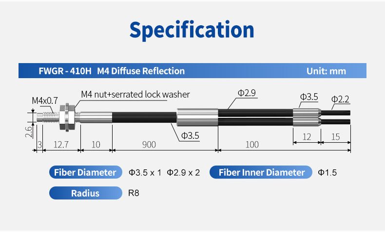 | Description | M4 Through Beam Fiber Optic Sensor |