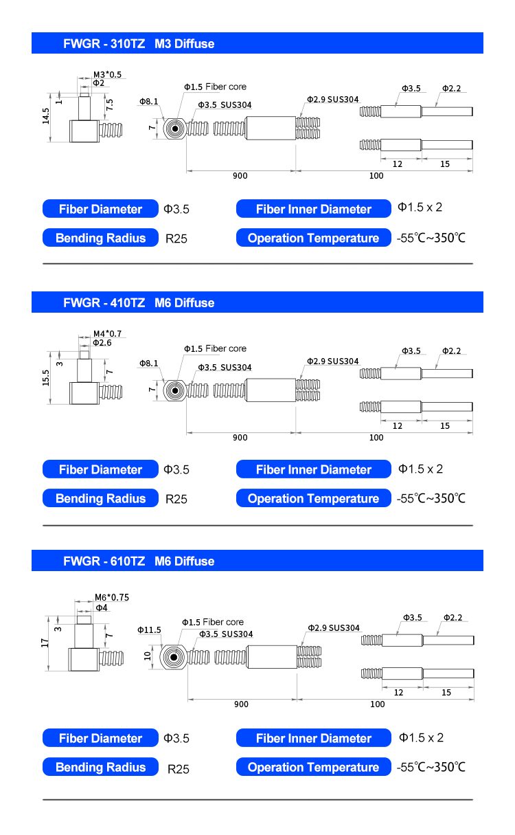 | Fiber Inner Diameter | 1.5×2 |